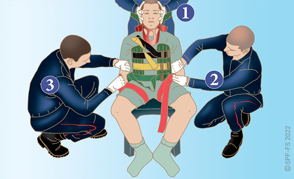 Le sapeur-pompier qui sera auprès de la victime et qui l'accompagnera tout au long de l'action de secours s'appliquera dans les actions suivantes :