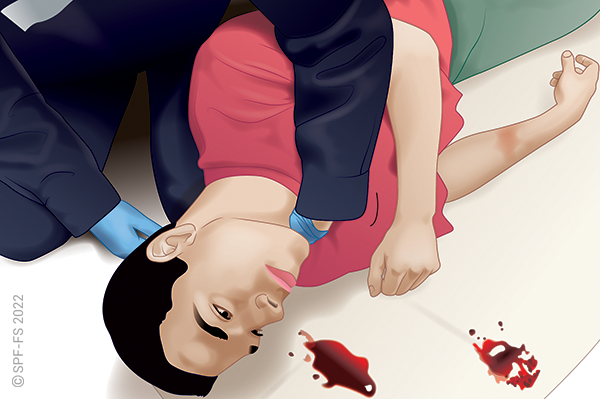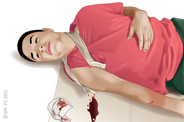 Si des éléments visuels négatifs (blessure importante, sang,…) focalisent l'attention de la victime, les masquer à sa vue ou proposer de fermer les yeux en restant concentrée sur la voix du sapeur-pompier.