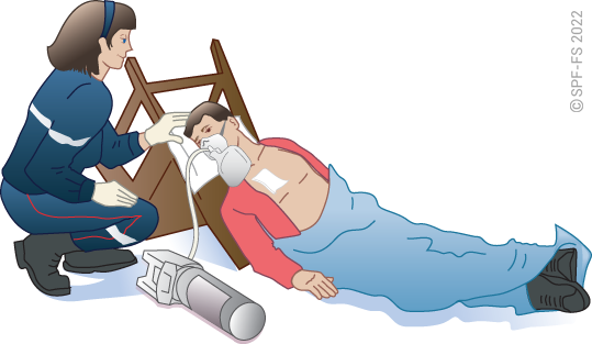 « Je vais vous appliquer un masque avec de l'oxygène sur la bouche et le nez, il va vous aider à mieux respirer ».