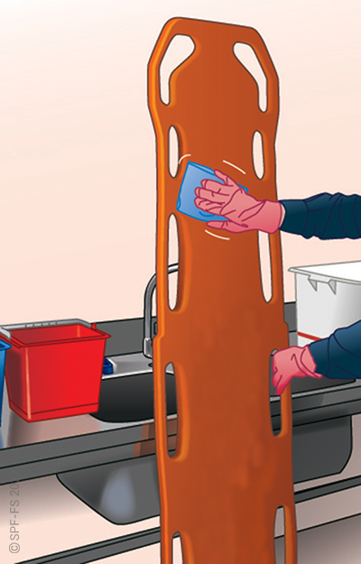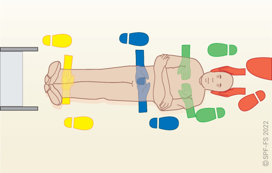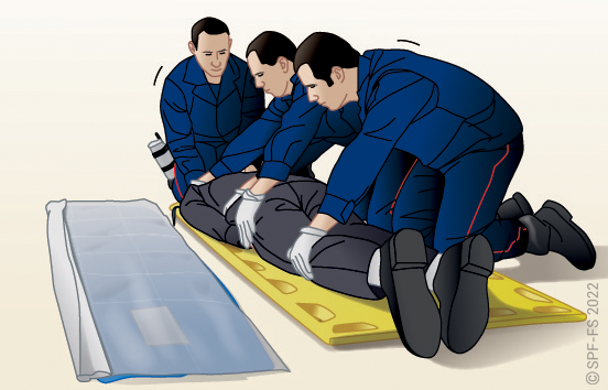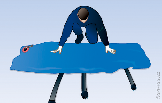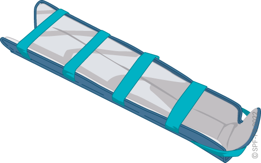 Lors des extractions latérales, afin de conditionner directement la victime dans le matelas immobilisateur à dépression (MID), le plan dur (sans son système de cale-tête) n'est utilisé que pour faire glisser la victime :