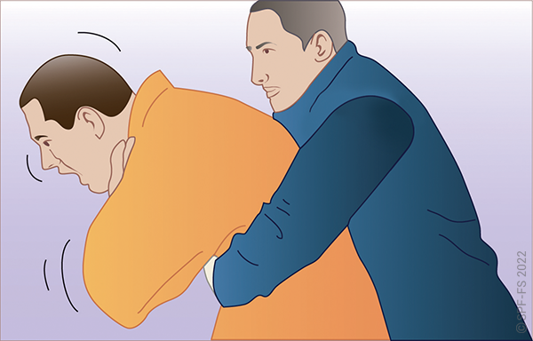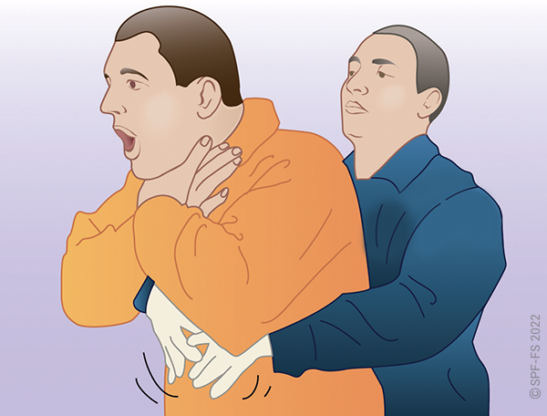 Le boa sera retiré en réalisant un relais du maintien tête afin d'immobiliser complètement la victime.