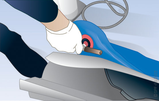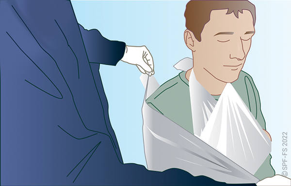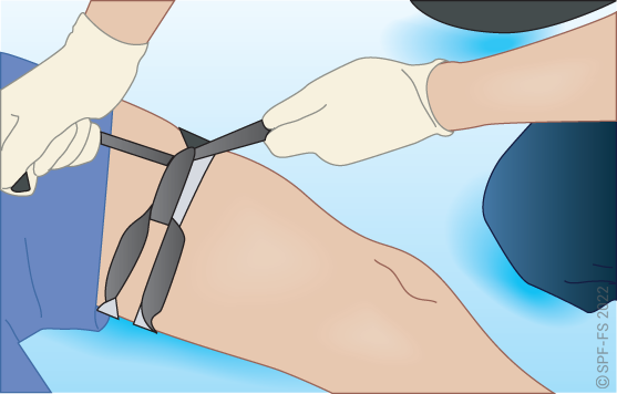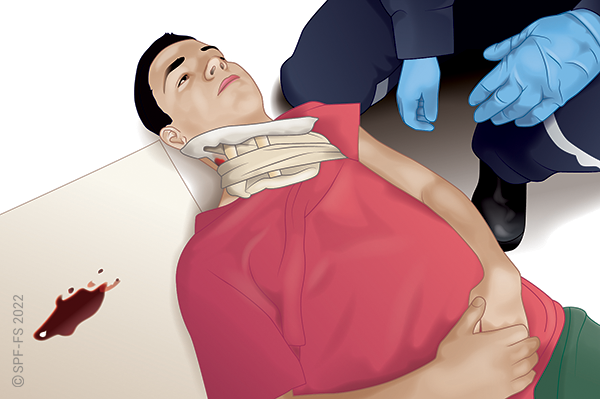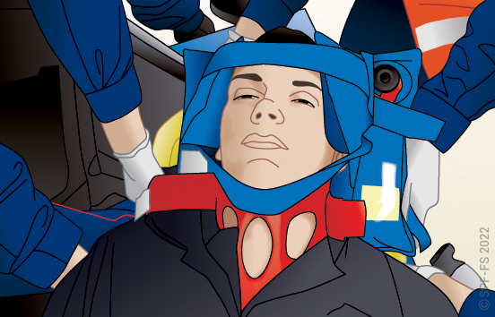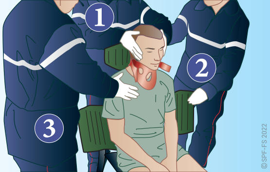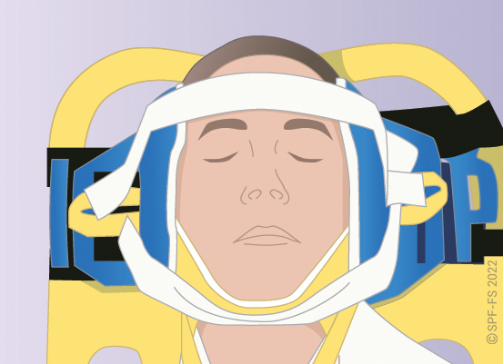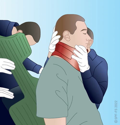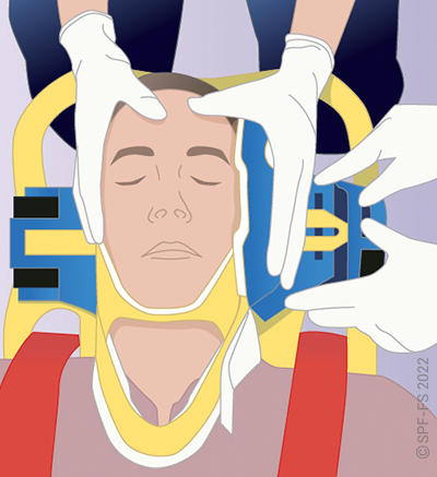 Quelle que soit la technique utilisée, la première étape est la mise en place d'un collier cervical (cf. fiche technique I.01).