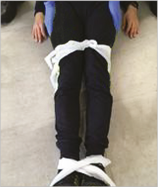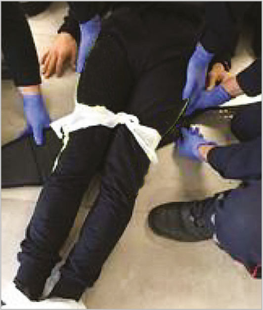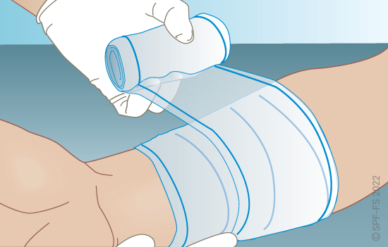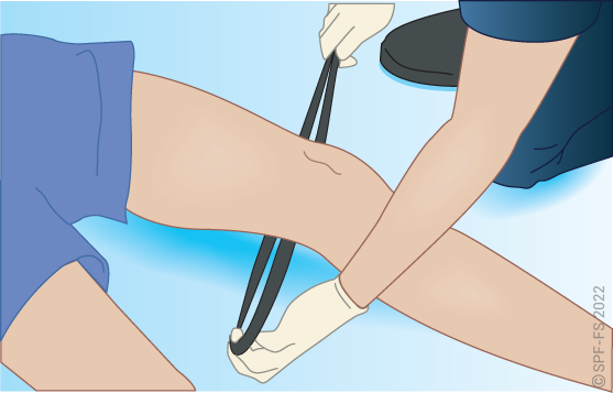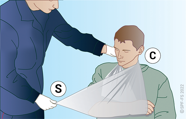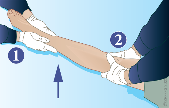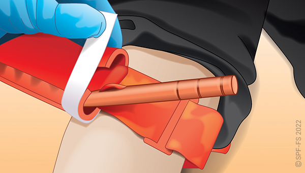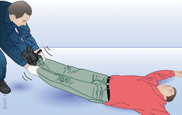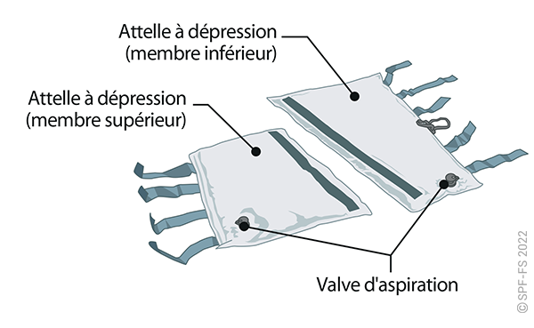 Utiliser l'attelle de jambe à dépression en disposant la partie large au niveau de la tête.