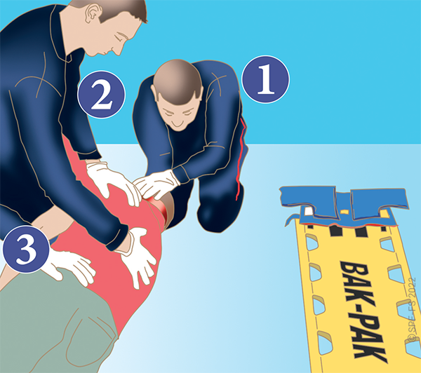Cette technique de cueillette permet le retournement d'une victime extraite sur le ventre, en toute sécurité et en privilégiant le respect de l'axe « tête-cou-tronc ».