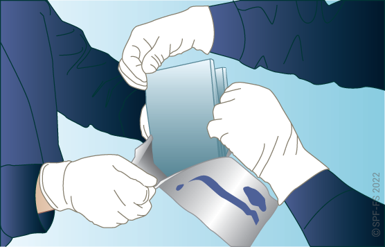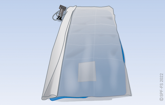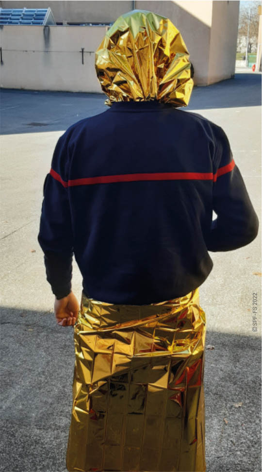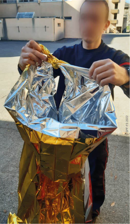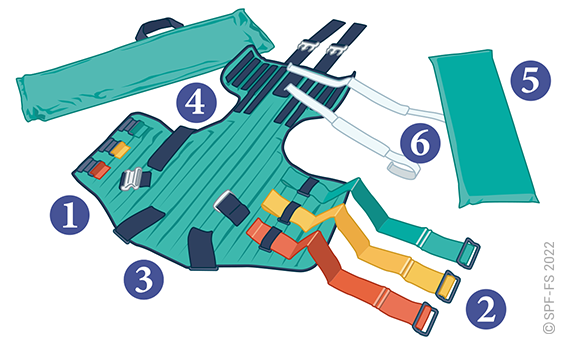 Le drap ne doit pas rendre inaccessible les sangles qui permettent de maintenir la victime une fois celle-ci installée sur la chaise.