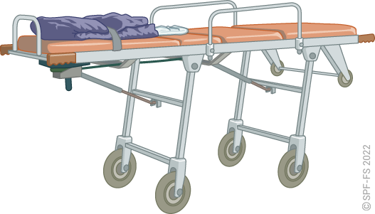 Le déchargement d'une victime d'un VSAV se fait exactement de manière inverse au chargement en veillant au verrouillage des deux bras du chariot.