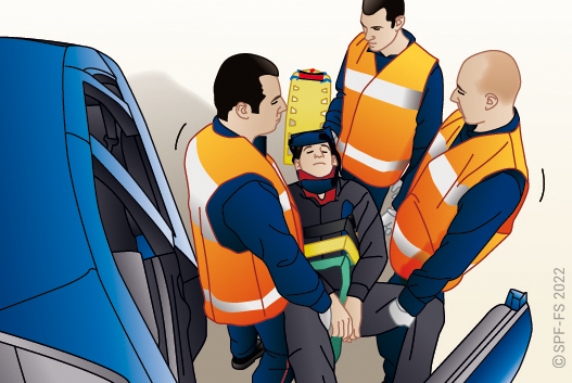 Cette technique permet l'extraction rapide et en sécurité d'une victime, dont les mouvements du rachis ont été préalablement restreints au moyen d'une attelle cervico-thoracique (cf. fiche technique I.02) hors d'un véhicule léger, lorsque le dégagement latéral n'est pas réalisable ou que la victime présente des atteintes traumatiques majeures (fracture du fémur, du bassin, du rachis…).