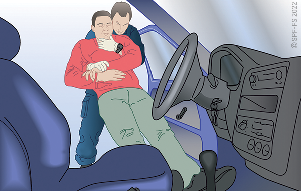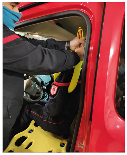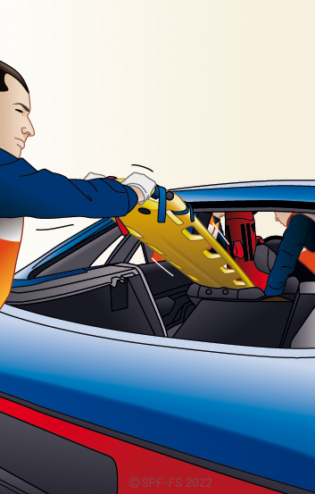 L'extraction de la victime au moyen du boa peut se faire aussi bien côté conducteur que passager ou par le hayon arrière. Les principes de mise en œuvre restent identiques.