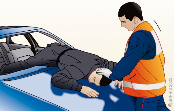 Extraction d'une victime affalée sur le capot d'un véhicule