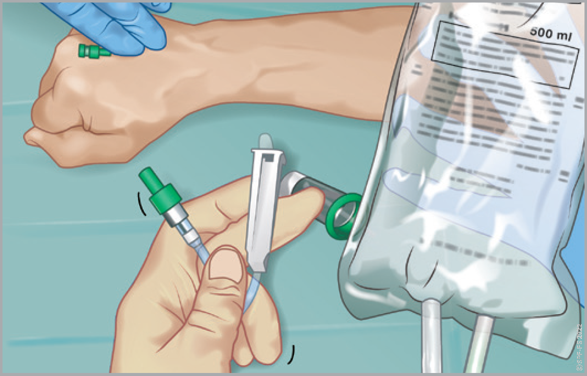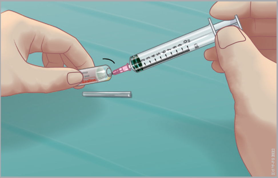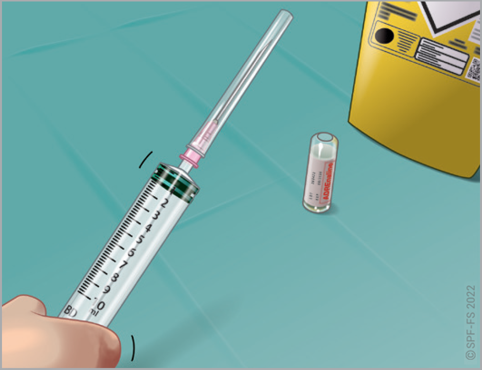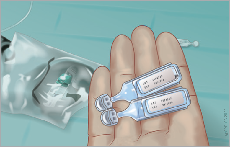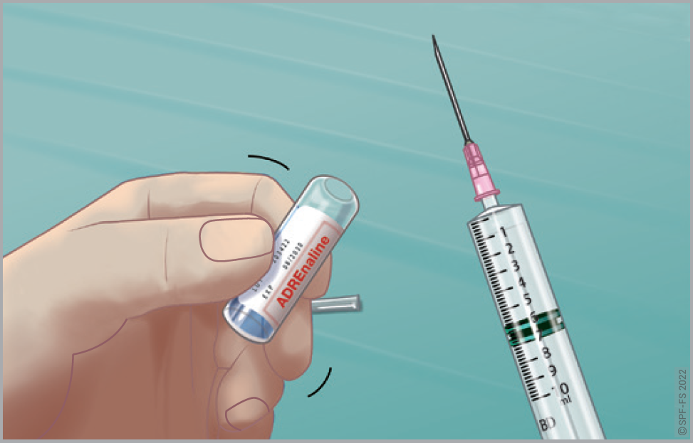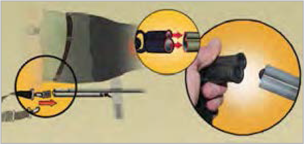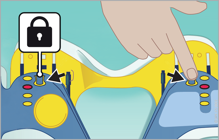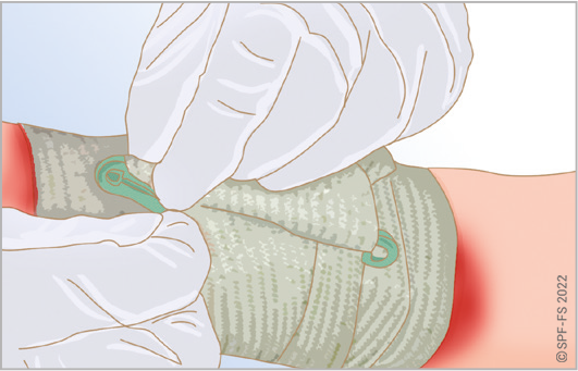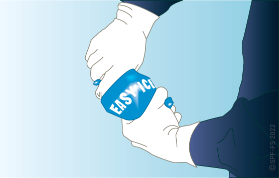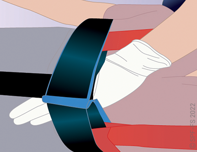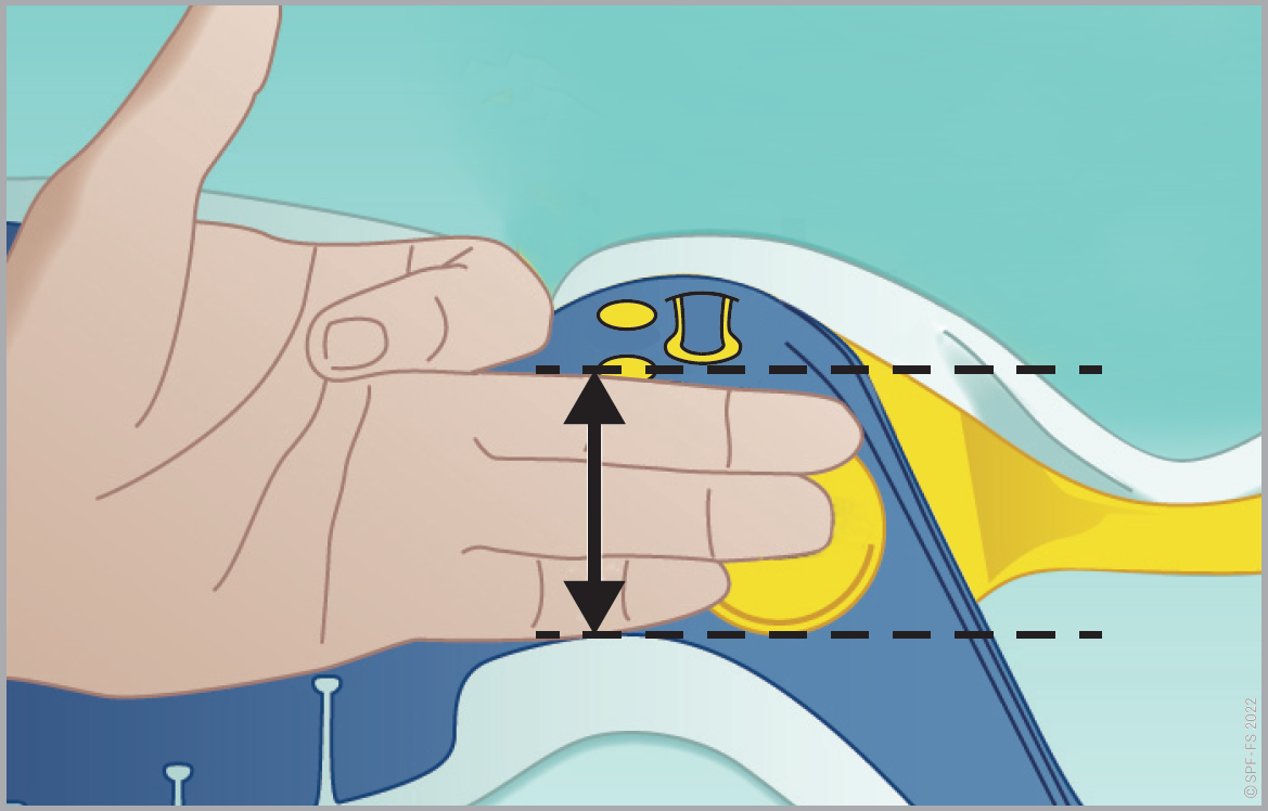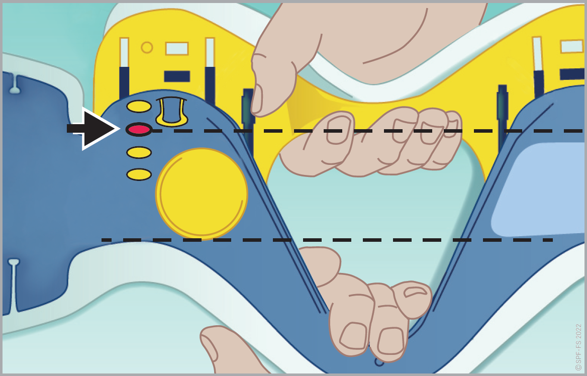 Ajuster le sanglage de la victime puis réunir les deux bretelles en les engageant jusqu'au « clic ».
