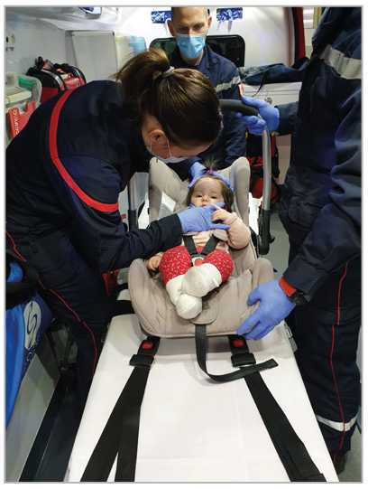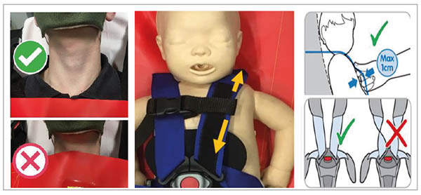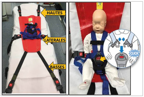 Ainsi, le harnais pédiatrique de transport sera mis en œuvre :