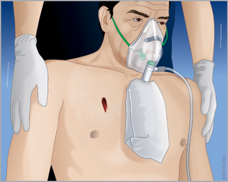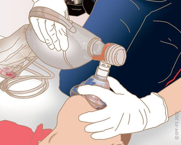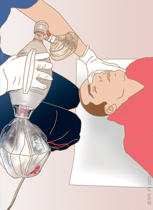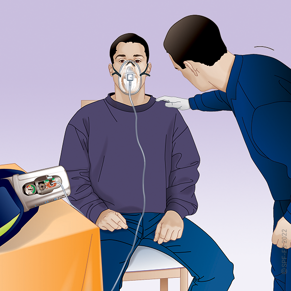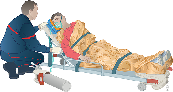 « Je vais vous appliquer un masque avec de l'oxygène sur la bouche et le nez, Cela va vous aider à mieux respirer ».