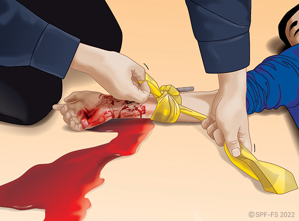 Si des éléments visuels négatifs (blessure importante, sang,…) focalisent l'attention de la victime, les masquer à sa vue ou proposer de fermer les yeux en restant concentrée sur la voix du sapeur-pompier.