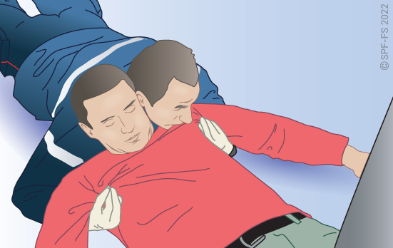 Dans le cas d'une victime en arrêt cardiaque, un dégagement d'urgence (cf. fiche technique G.20) doit être effectué dans la mesure du possible pour réaliser les gestes de secours adaptés. Si la victime ne peut pas être immédiatement dégagée, les techniques de réanimation sont réalisées en les adaptant à sa position.