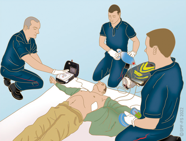 Dans le cas d'une victime en arrêt cardiaque, un dégagement d'urgence (cf. fiche technique G.20) doit être effectué dans la mesure du possible pour réaliser les gestes de secours adaptés. Si la victime ne peut être immédiatement dégagée, les techniques de réanimation sont réalisées en les adaptant à sa position.
