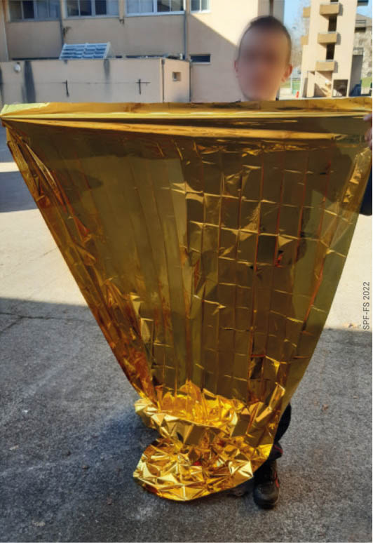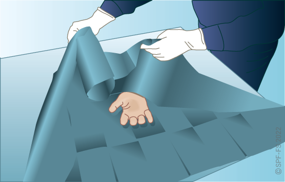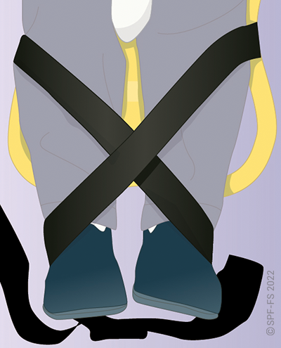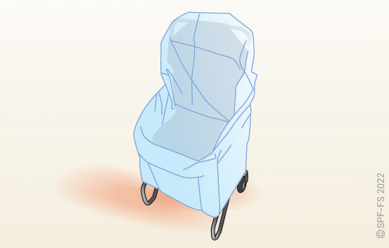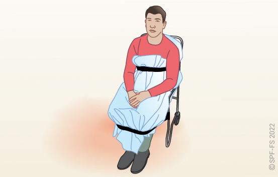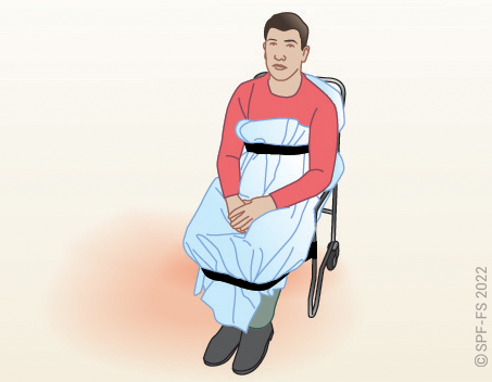 Le drap ne doit pas rendre inaccessible les sangles qui permettent de maintenir la victime une fois celle-ci installée sur la chaise.