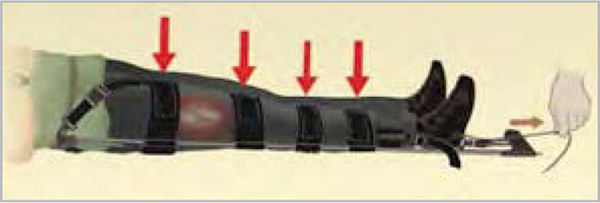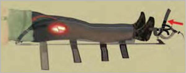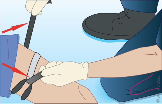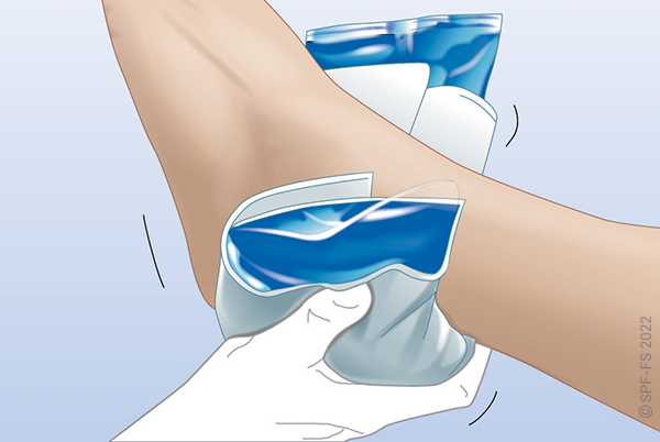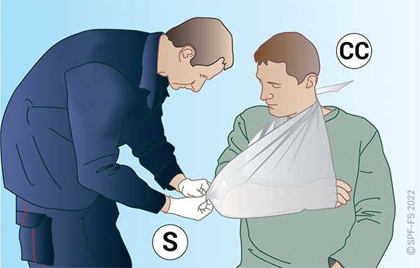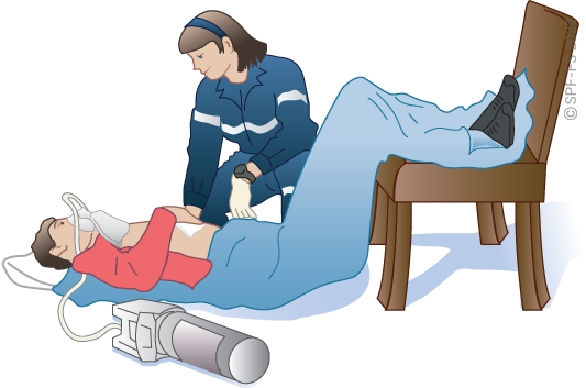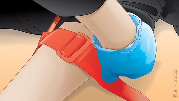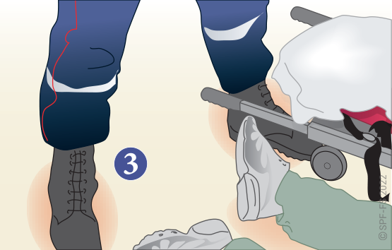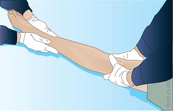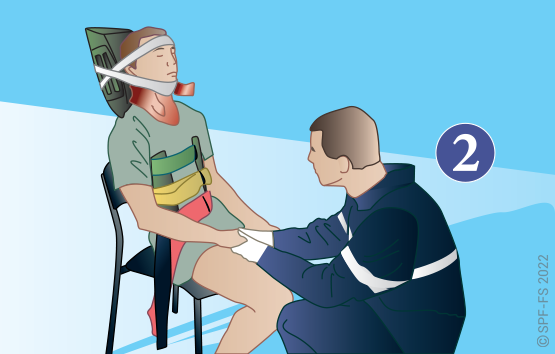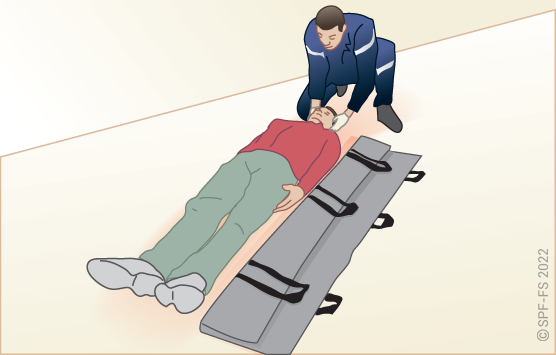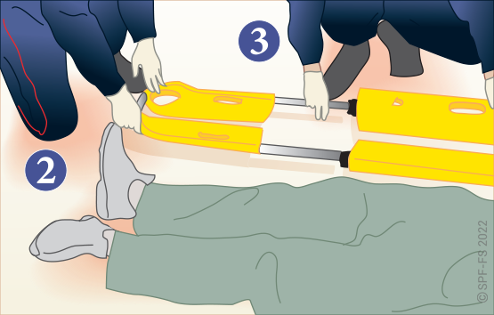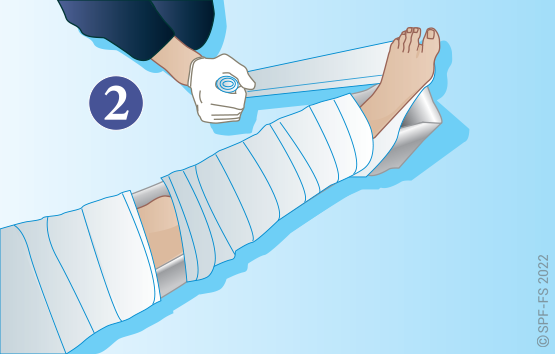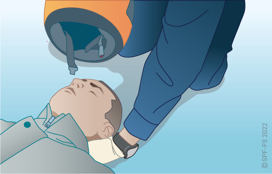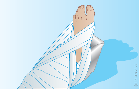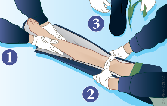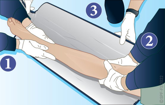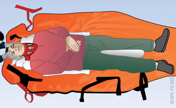 Utiliser l'attelle de jambe à dépression en disposant la partie large au niveau de la tête.