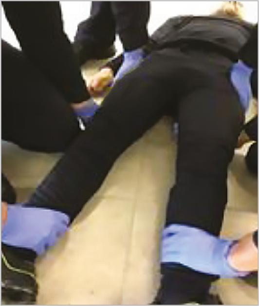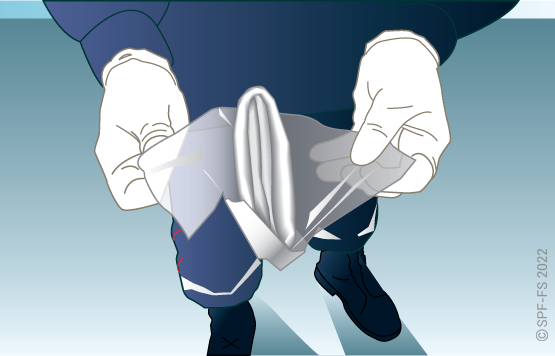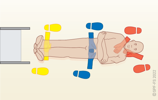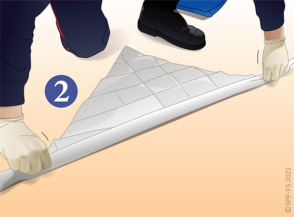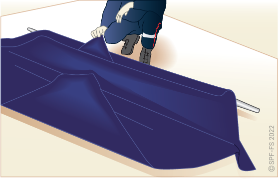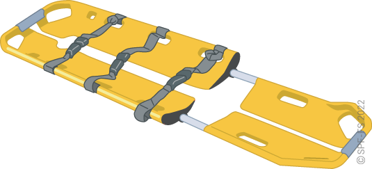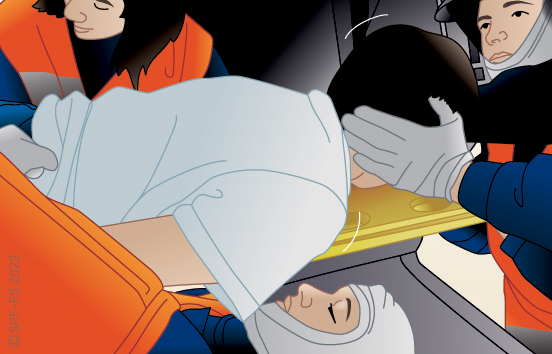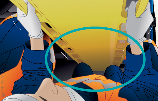 Lors des extractions latérales, afin de conditionner directement la victime dans le matelas immobilisateur à dépression (MID), le plan dur (sans son système de cale-tête) n'est utilisé que pour faire glisser la victime :