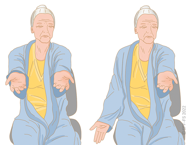 « Pour communiquer nous pouvons aussi établir un code entre nous, vous pouvez me faire un signe de la main ou avec votre pouce pour me dire oui ou non, par exemple ».