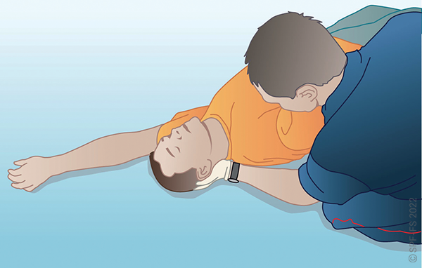 Retournement sur le dos d'une victime extraite en position ventrale