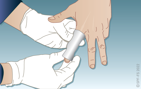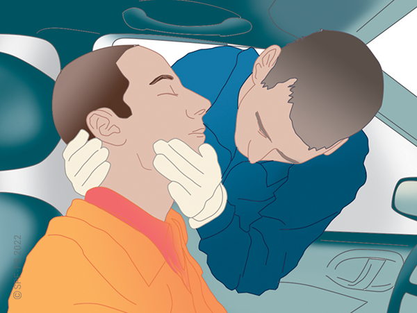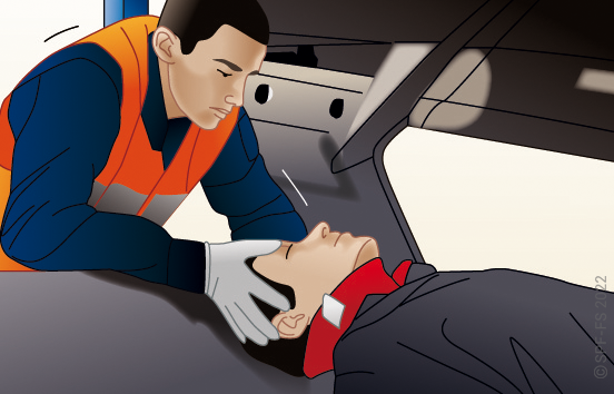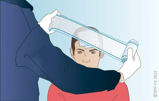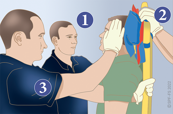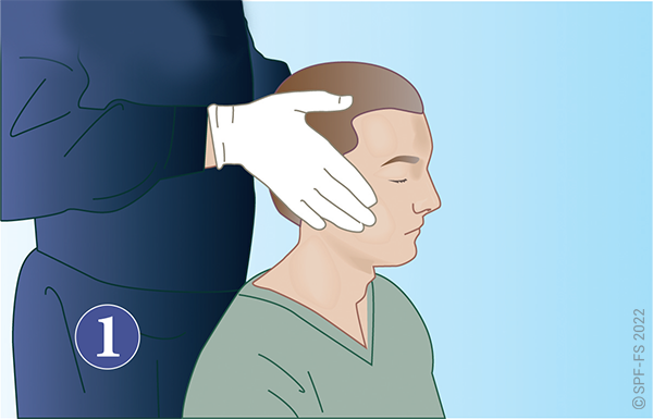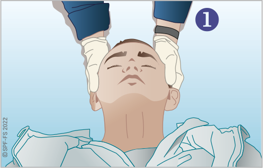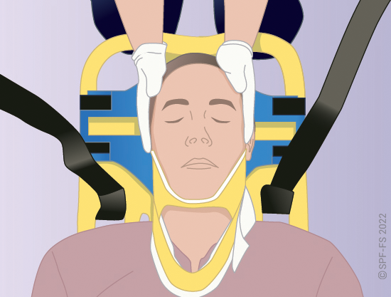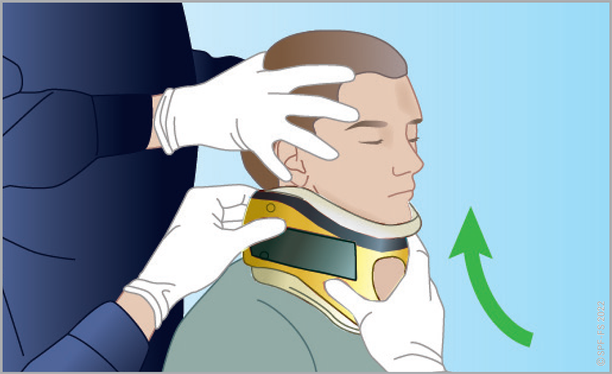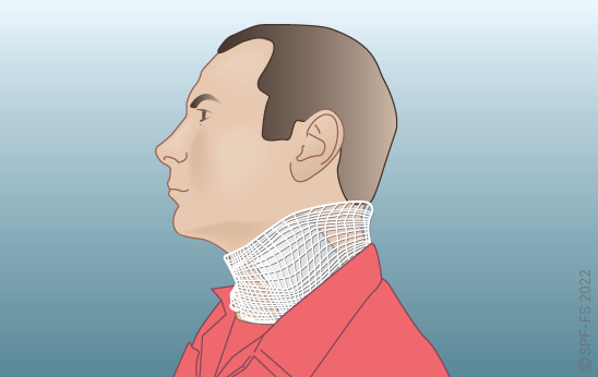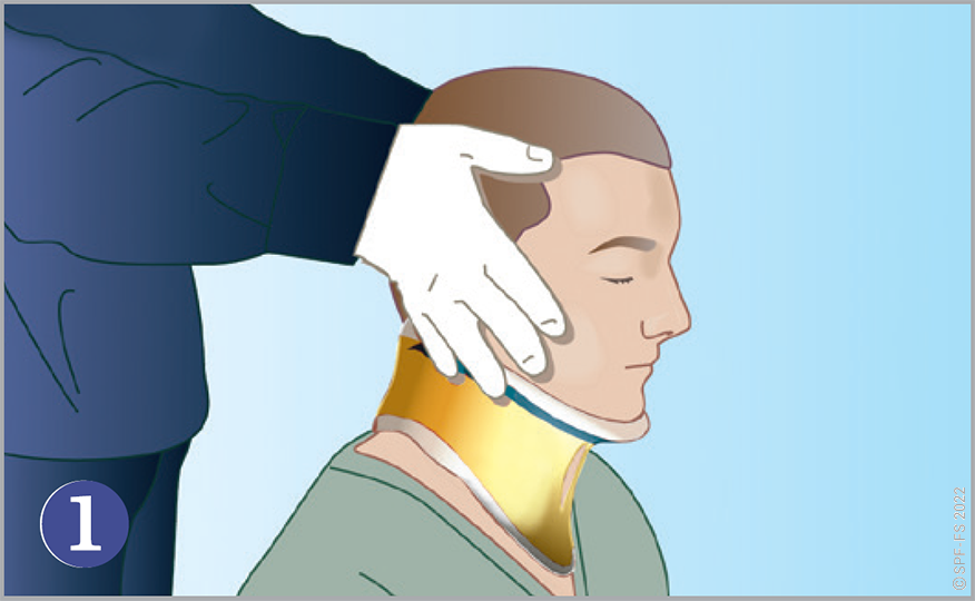Quelle que soit la technique utilisée, la première étape est la mise en place d'un collier cervical (cf. fiche technique I.01).