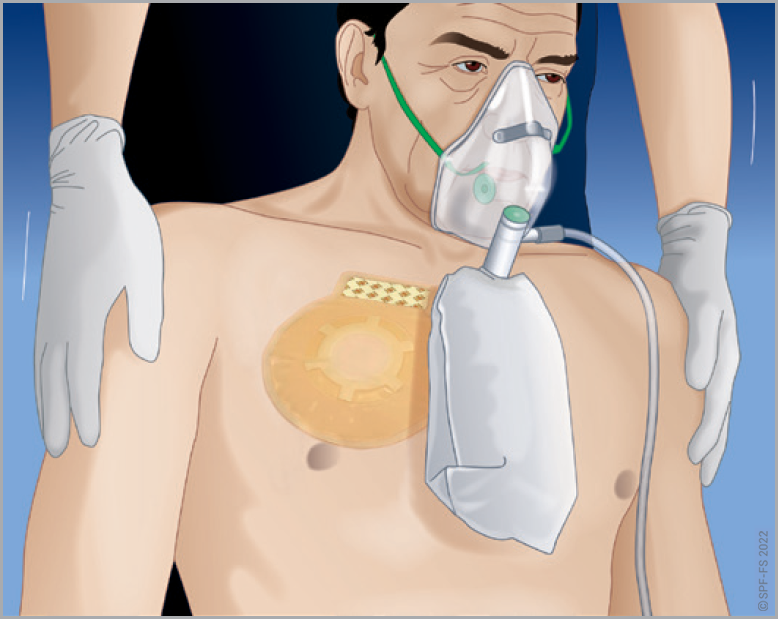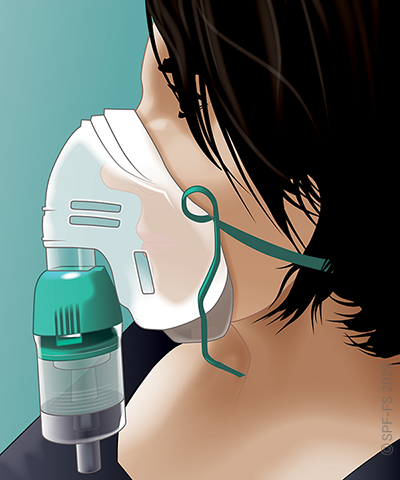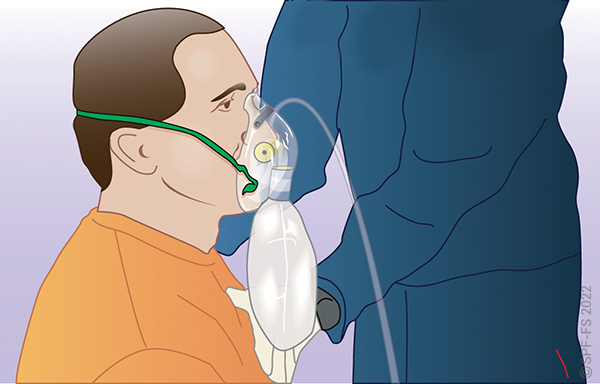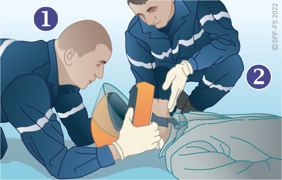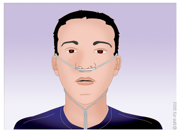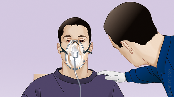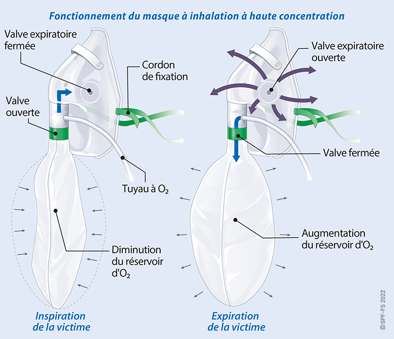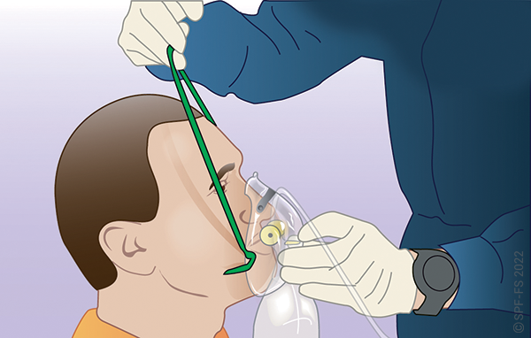 « Je vais vous appliquer un masque avec de l'oxygène sur la bouche et le nez, Cela va vous aider à mieux respirer ».