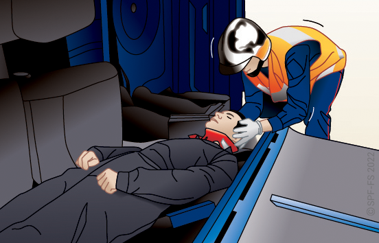 Si la victime est en arrêt respiratoire ou cardiaque, réaliser un dégagement d'urgence (cf. fiche technique G.20) si possible afin de réaliser les gestes qui s'imposent. Pour les victimes incarcérées, les techniques de réanimation sont adaptées à leur position.