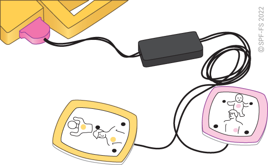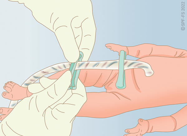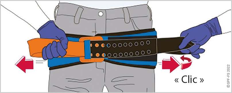 Ajuster le sanglage de la victime puis réunir les deux bretelles en les engageant jusqu'au « clic ».