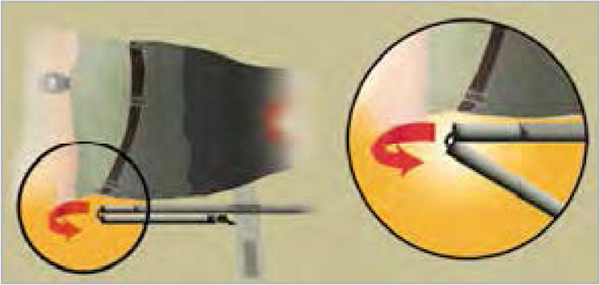 Fixer et ajuster les sangles en partie haute en les passant en tête de brancard à l'aide d'un demi-cabestan. Noeud : cf. annexe en point 6.