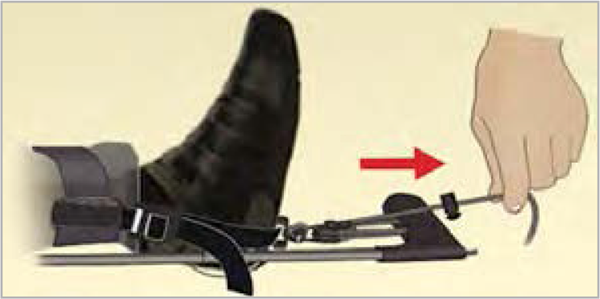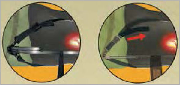 Fixer et ajuster les sangles en partie basse (2 possibilités : châssis ou poignées du brancard) ; puis les serrer pour mettre en tension le harnais.