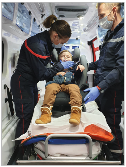 « L'intervention va se dérouler de la manière suivante : nous allons faire un bilan, ensuite nous ferons un point avec le médecin. À ce moment-là, nous verrons s'il est nécessaire de vous transporter à l'hôpital pour une prise en charge plus approfondie ».