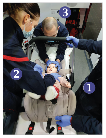Ainsi, le harnais pédiatrique de transport sera mis en œuvre :