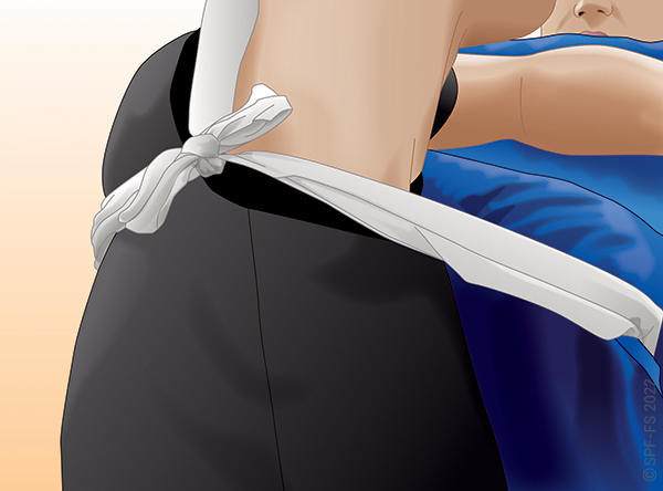 Le boa sera retiré en réalisant un relais du maintien tête afin d'immobiliser complètement la victime.
