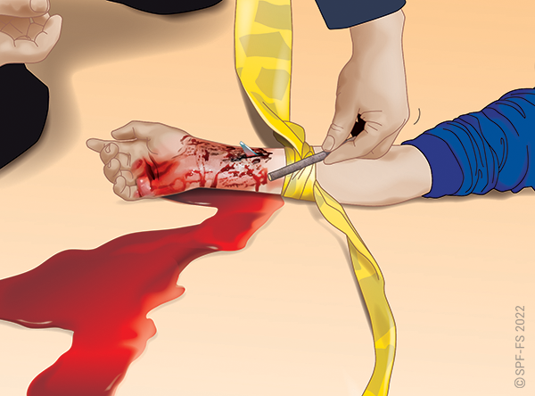 Si des éléments visuels négatifs (blessure importante, sang,…) focalisent l'attention de la victime, les masquer à sa vue ou proposer de fermer les yeux en restant concentrée sur la voix du sapeur-pompier.